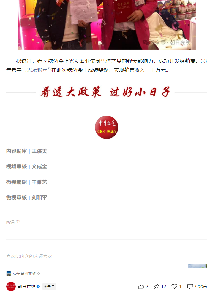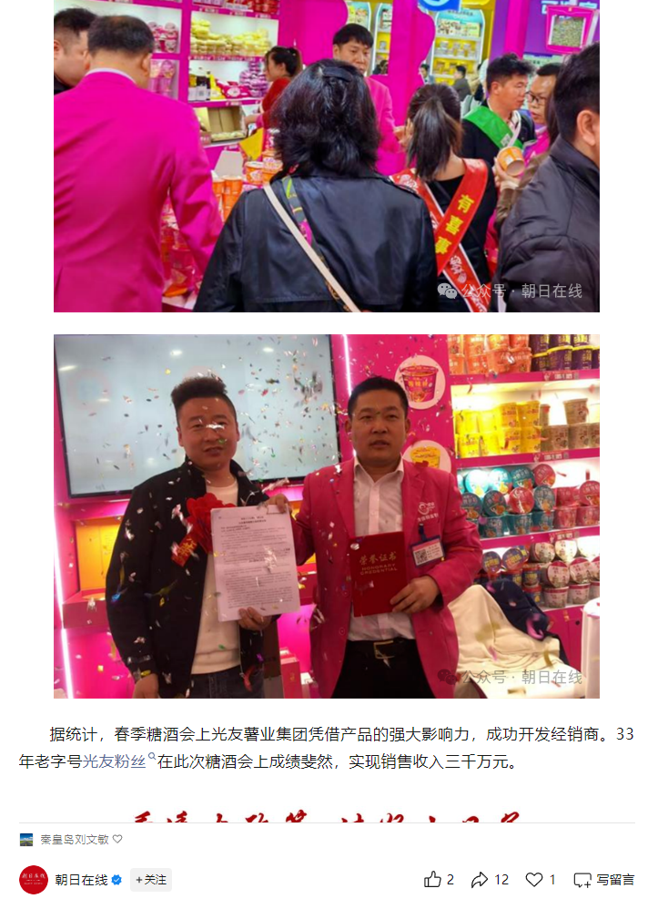 轉(zhuǎn)載朝日在線——光友粉絲香萬(wàn)里 糖酒會(huì)上創(chuàng)佳績(jī)